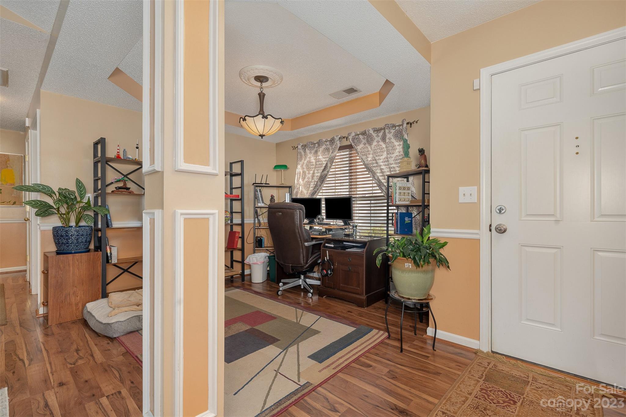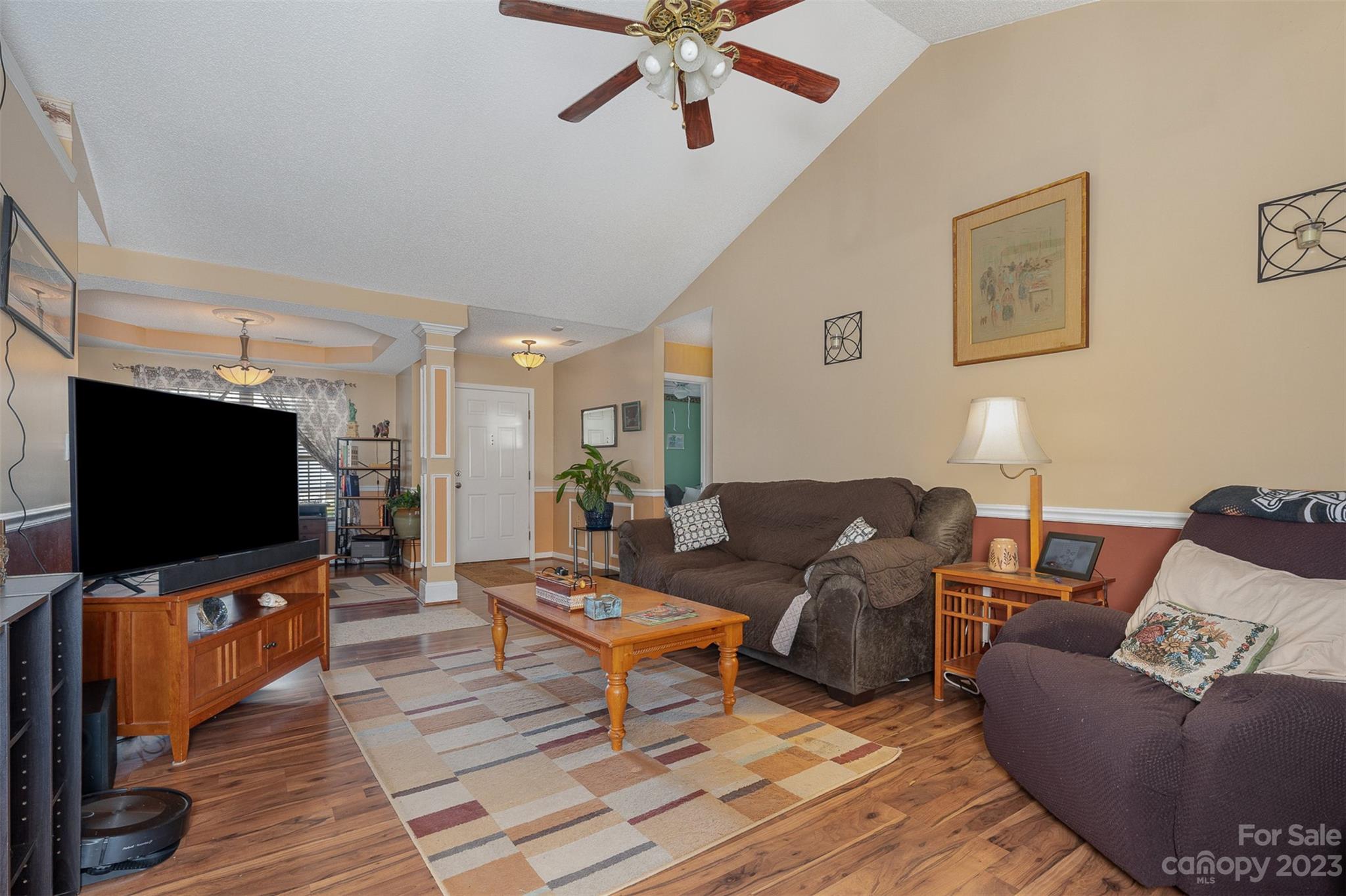 Welcome home to Steelecroft Place! Convenient to retail, CLT Airport, Outlets, 485 and 77, restaurants, and so much more! Home features an open floor plan with vaulted ceilings allowing for lots of natural light and a great entertaining flow. Flex space is perfect for dedicated office or playroom. Living room opens to the kitchen with eat in area. Primary bedroom w/vaulted ceiling has private en-suite and large walkin closet. 2 more bedrooms finish the main floor. There is one more bedroom upstairs that could also be used as a bonus/media room! Enjoy your view of the pond from the patio and fully fenced yard! Convenient access to the community walking trails, nieghborhood pool and playground!