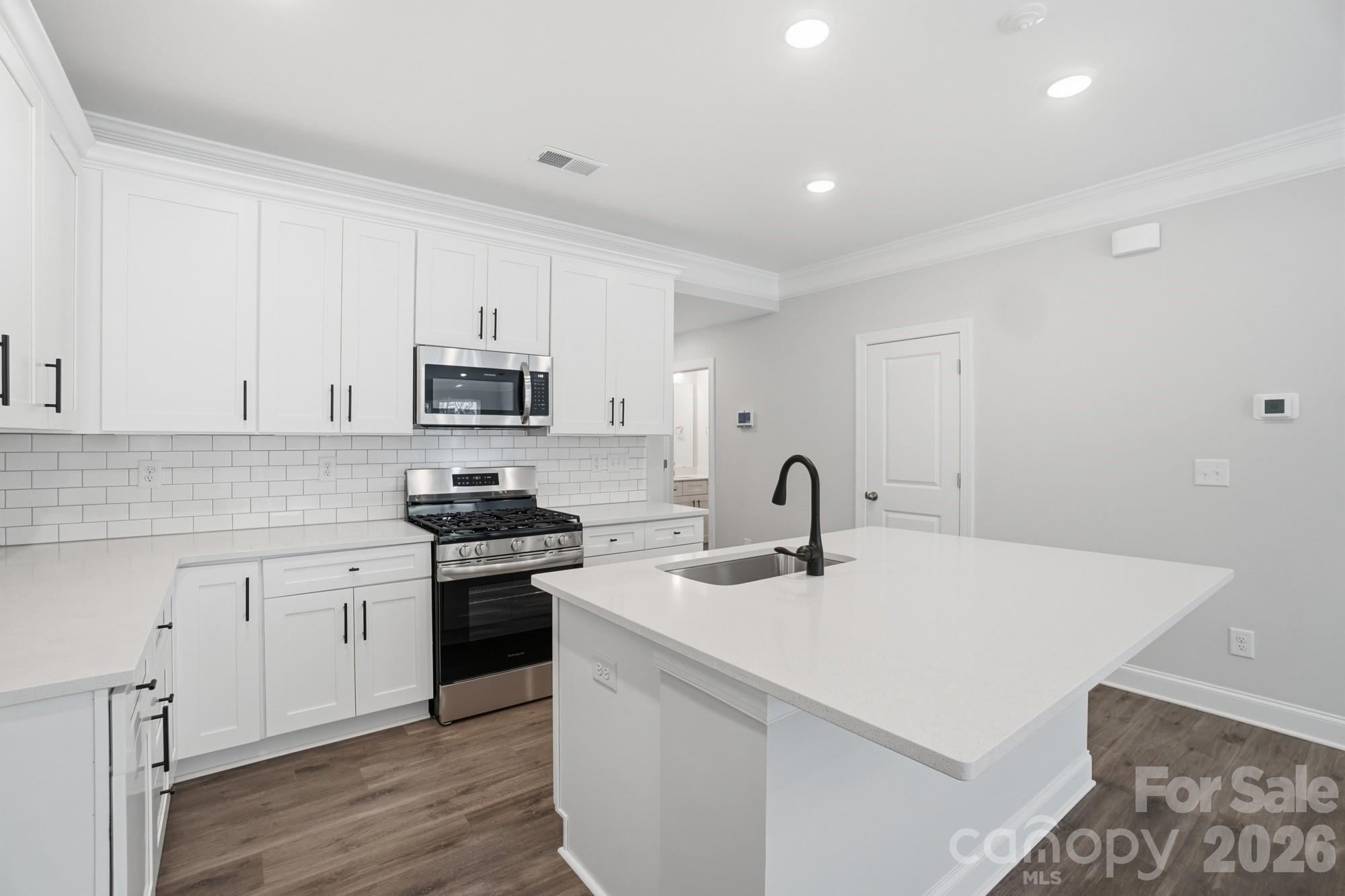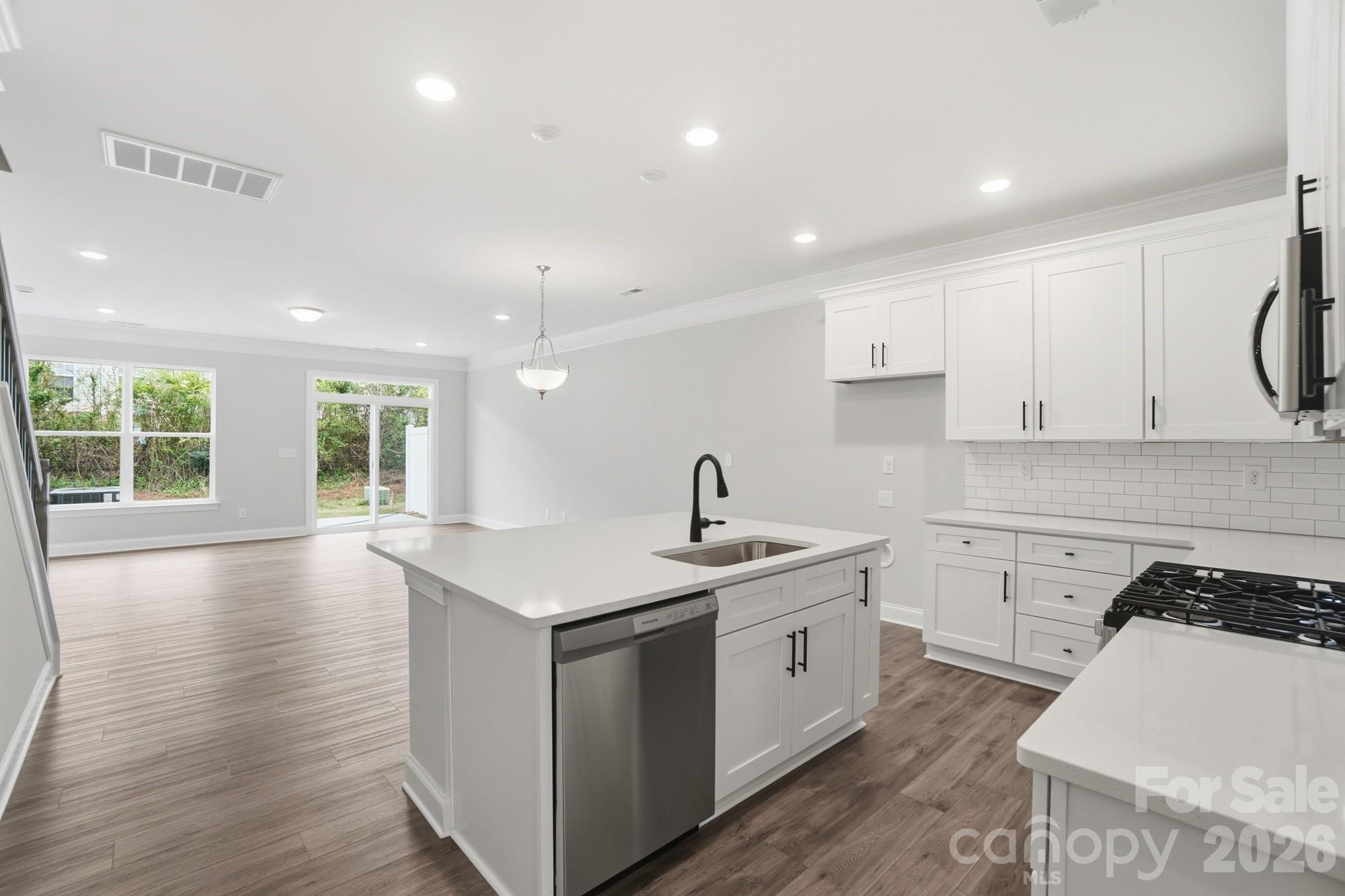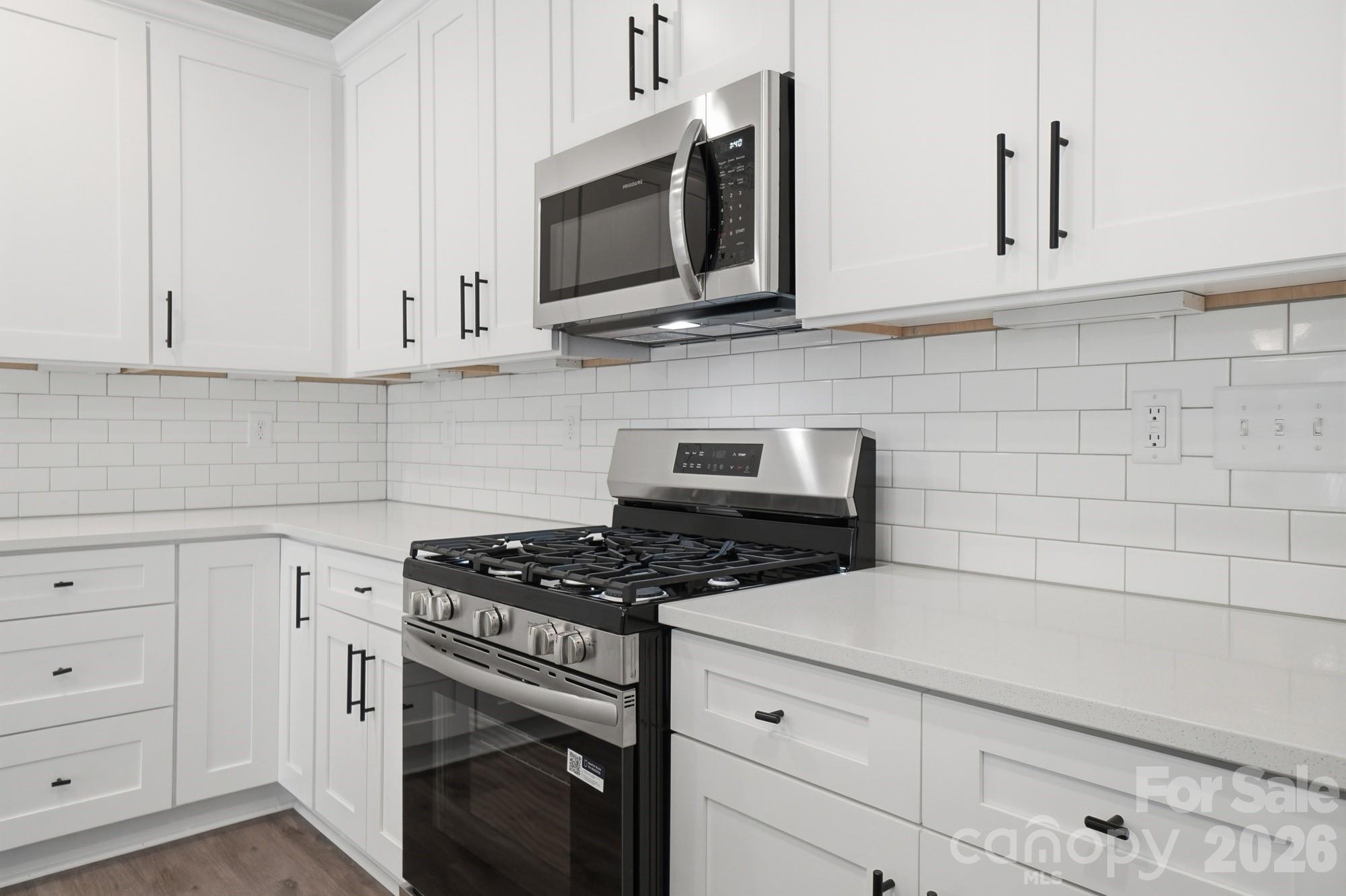 New townhomes in Harrisburg! This home has 3 bedrooms, 2.5 baths, and more than 1,700 square feet of living space. The light and bright kitchen features white cabinets, quartz countertops, and tile backsplash, along with stainless appliances including a gas range. All baths feature white cabinetry and white quartz counters as well. The primary suite, located on the upper floor, includes a large walk-in closet, and the primary bath features a tiled shower and dual-sink vanity. The upper floor also features two additional bedrooms, a full bath, and the laundry closet. Additional features include stairs with composite treads and metal balusters, foyer with large closet, Enhanced Vinyl Plank (EVP) flooring, and beautiful wall trim. Community amenities include outdoor pool & cabana, dog park, paved walking trail, and playground.