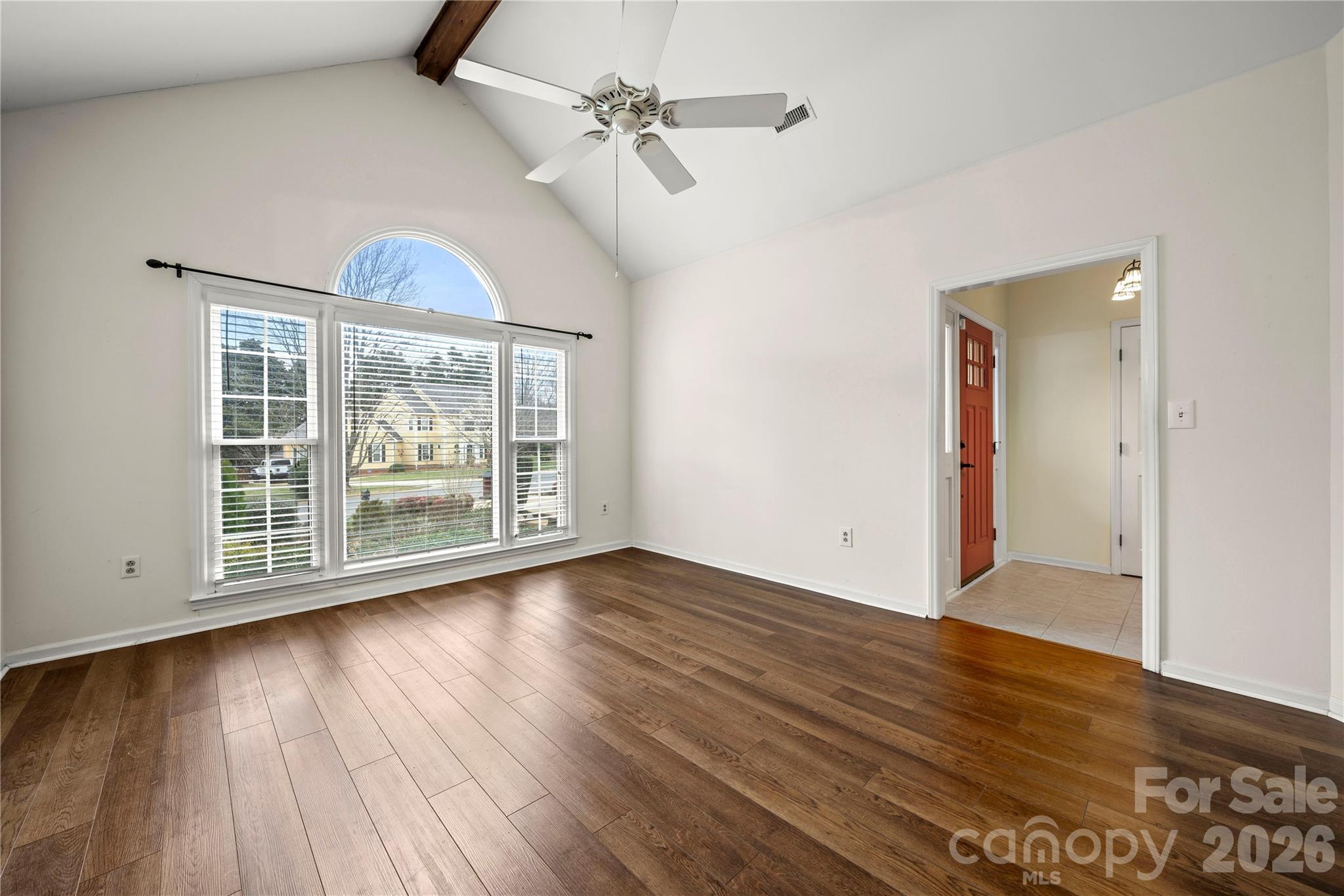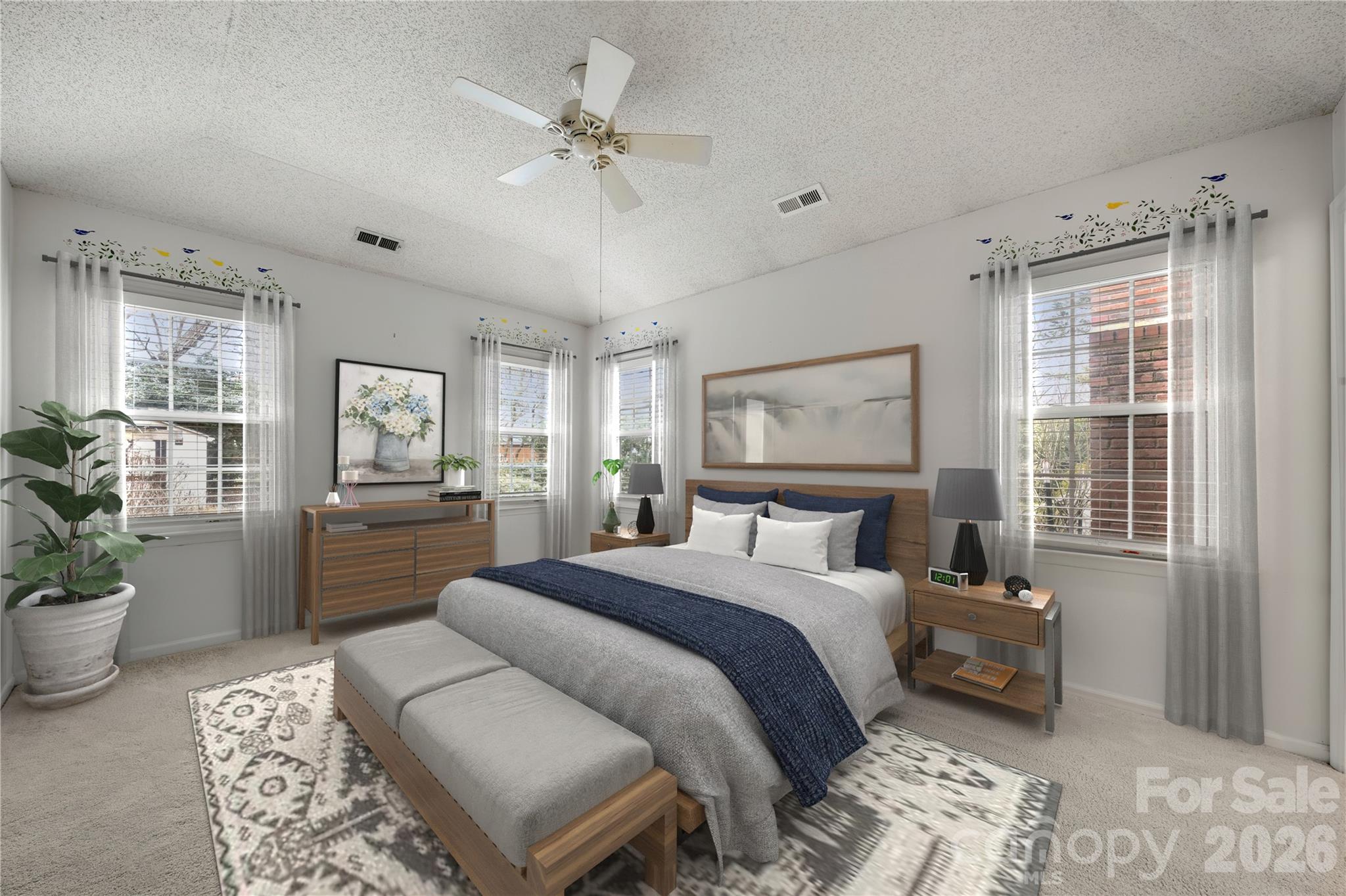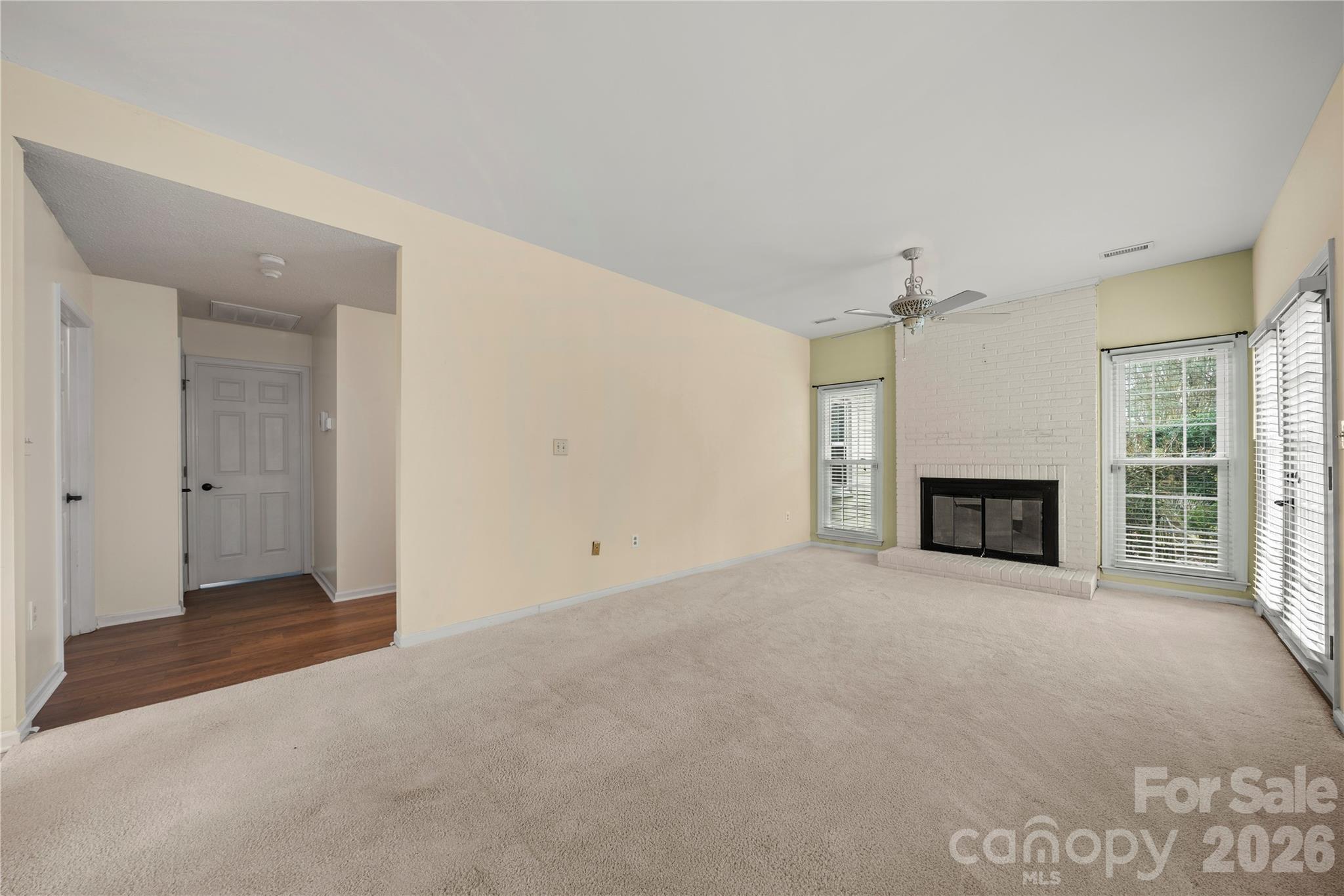 Welcome to this ranch home in Cedarfield! The kitchen features stainless steel appliances—including a brand-new dishwasher (2025)—granite countertops, and an open layout that flows seamlessly into the vaulted living room. Just off the kitchen, you’ll find a sunroom. The home also offers a family room with a wood-burning fireplace, perfect for relaxing or gatherings. Continue to the primary suite which features a tray ceiling and an ensuite bathroom with a walk-in shower, soaking tub, and double vanity. Two additional bedrooms, a full bathroom, and a dedicated dining area complete this well-designed floor plan. Notable updates include a NEW ROOF installed in March 2026, a new HVAC system and ductwork replaced in May 2025 and Hardiplank siding installed in 2014. Cedarfield residents enjoy fantastic amenities such as an outdoor pool, playground, pond, and walking trails with direct access to the Torrence Creek Greenway. Come see all this wonderful property has to offer!