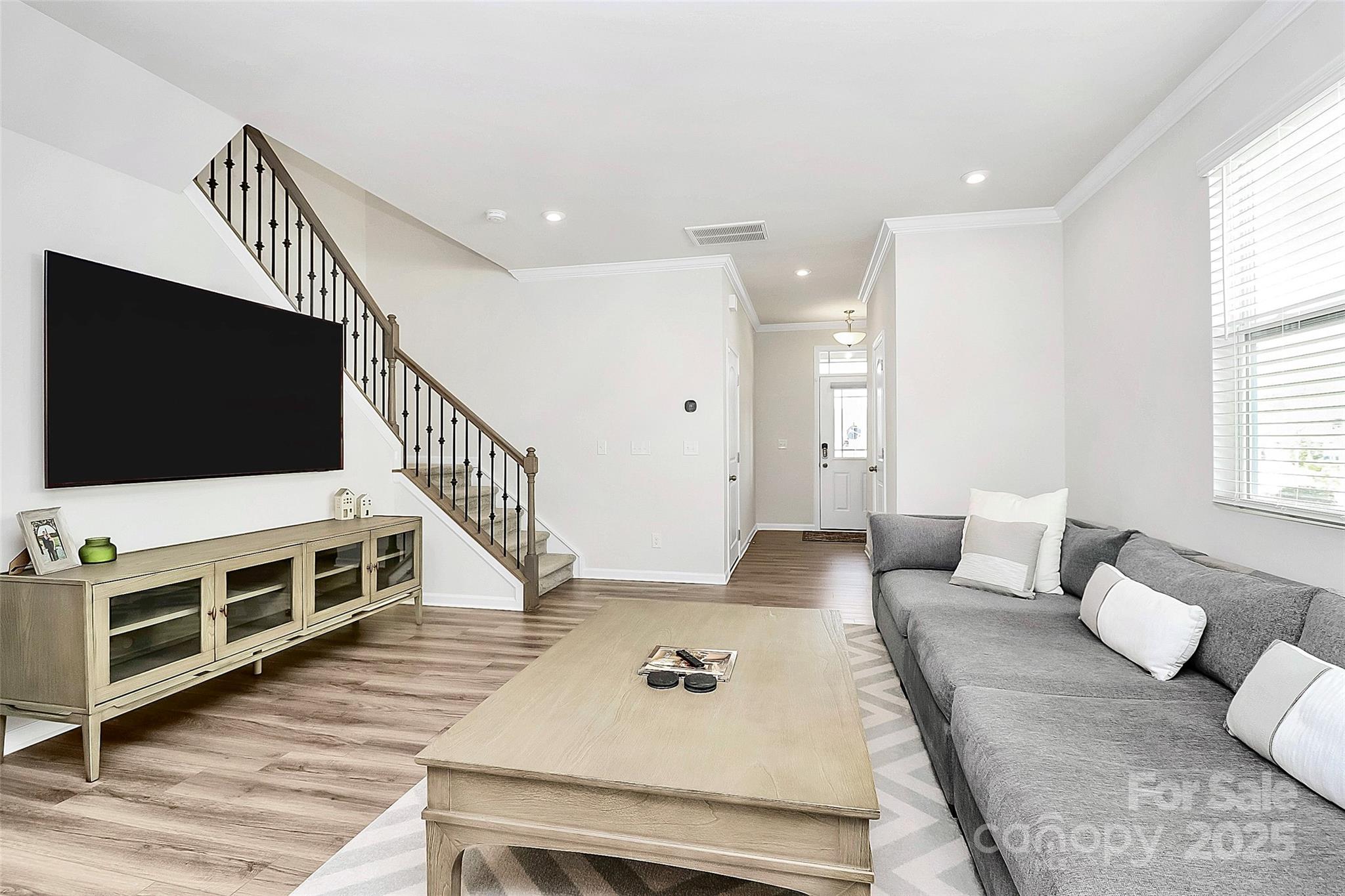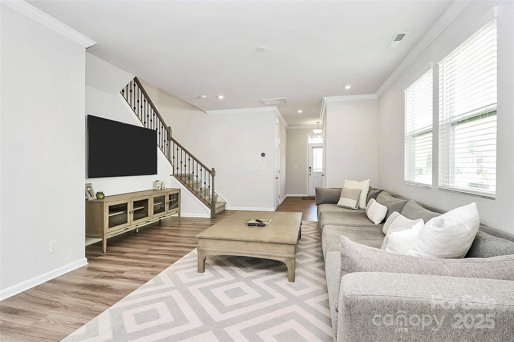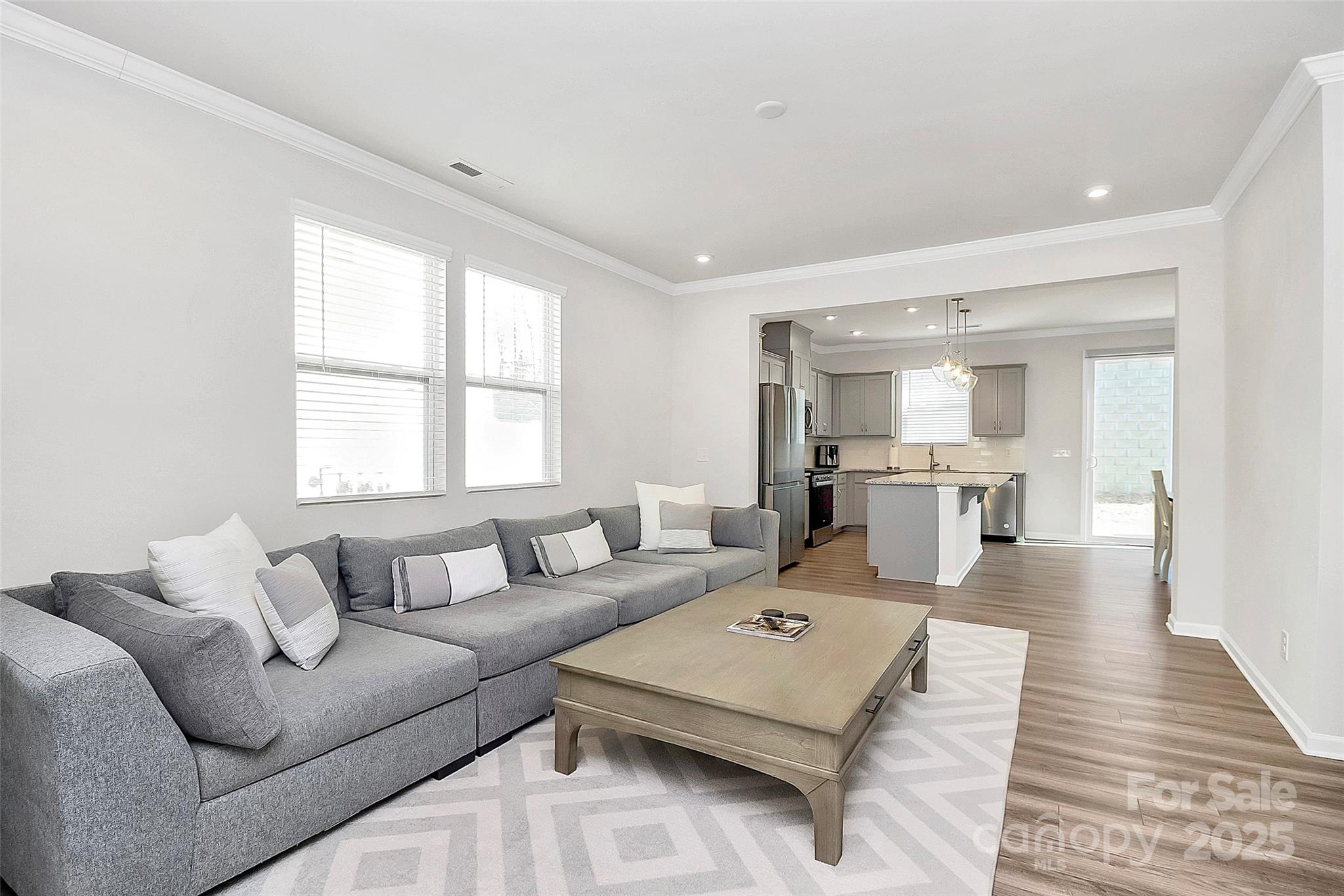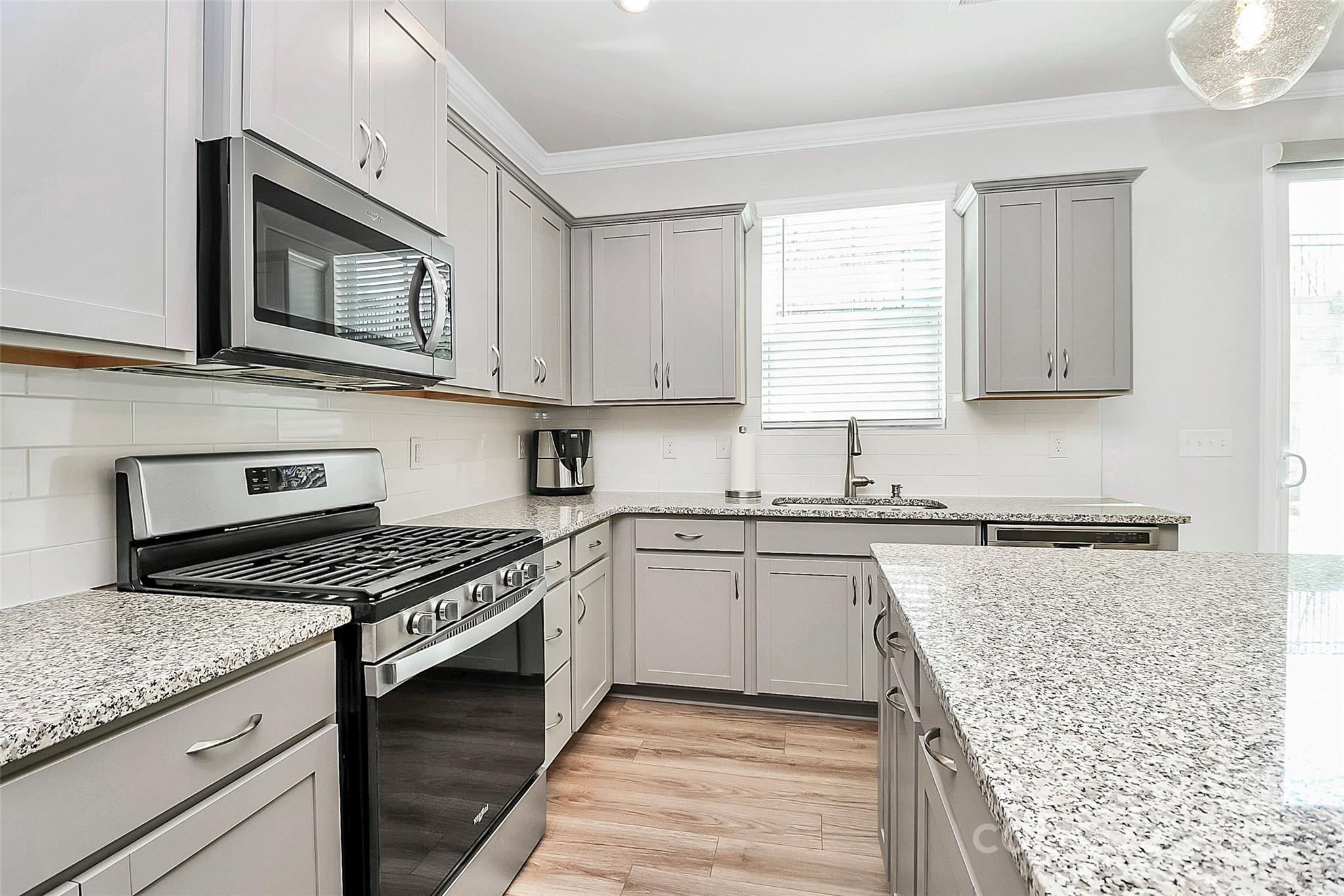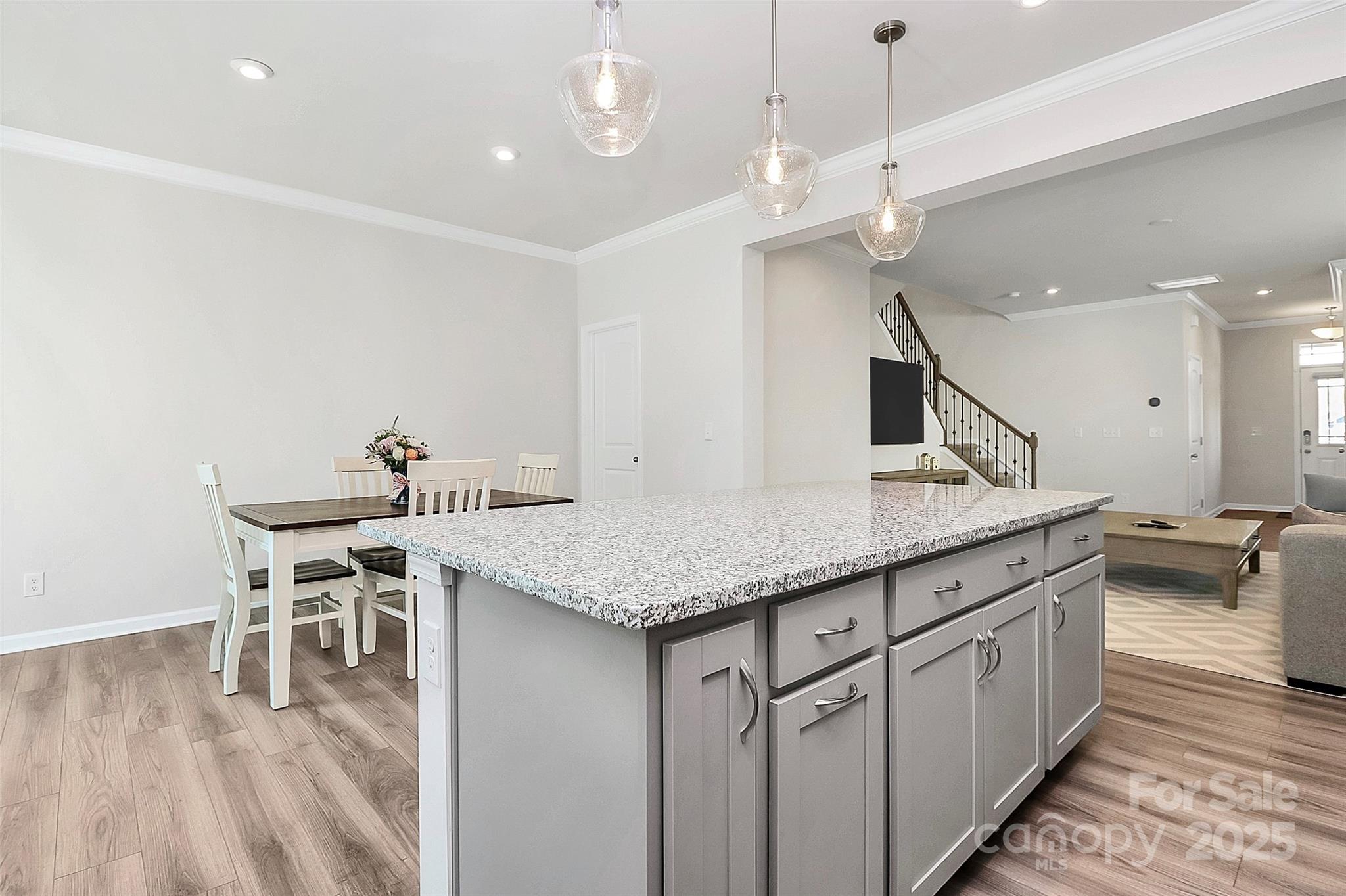 Like-new 3-bedroom, 2.5-bath end-unit townhome with finished 1-car garage and private views! The open layout features stylish LVP flooring on the main level, a spacious gathering room, and a stunning kitchen with gray 42” cabinetry, stainless steel appliances, a large center island with seating, and a sunny breakfast nook. The main floor also includes a generous storage area. Upstairs, wrought-iron railings lead to three bedrooms plus a versatile loft. The owner’s suite offers a spa-like bath, while the private patio is perfect for outdoor relaxation.