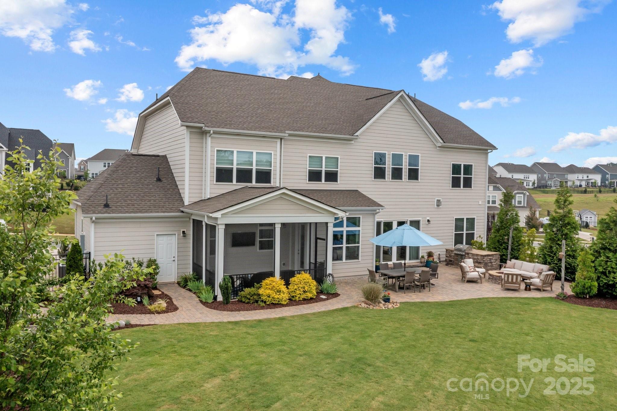 This is the one you’ve been waiting for - new dream house with incredibly landscaped 0.41 acre fenced yard in Hough HS and Bailey MS area! The backyard oasis of privacy, professional landscaped trees and flat space await you! This exceptional home offers 5 bedrooms, 4 full baths, 1 half bath and over 4,200 sq ft of open, light-filled living space. Two offices provide the perfect blend of home-work life balance with one on each level! The main level flows beautifully into both a screened porch and an open-air patio—ideal for entertaining or relaxing. Gourmet kitchen features oversized island, extensive cabinet storage, GE Cafe appliances and large walk-in pantry. Primary bedroom suite is complete with a light filled office. Primary bathroom features dual sinks, large soaking tub, elegant shower and dual closets with abundant space with professionally installed built-in shelving. This premium lot has an incredible private tree-lined landscaping plan with gorgeous flow, colorful flowering, unique plantings, stone and a flat area in the center. Yard includes pre-wire for a hot tub and drip irrigation. Paver stones surround the built-in Bull Outlaw 30" 4-burner outdoor gas grill! Enjoy evenings sitting around the built-in stacked stone Gas Fire Pit surveying your elegant paver stone patio which reaches to the garage and driveway. Additional highlights include a 3-car garage, spacious second-floor bonus room, and great finishes throughout including 10' ceilings. Black Aluminum 54" Fence encloses the backyard with 2 gates (front and side) and a gorgeous Dry River Bed. Residents of the sought-after Walden community of 377 homes enjoy access to amenities including a clubhouse, pool, playground, basketball hoop and picnic area. Ideally located near Lake Norman, I-77, Charlotte, restaurants, shopping and more. Trees include 29: Nellie Stevens Holly, Arbovitae, Little Gem Magnolias, Pink Dogwoods, Eastern Redbuds, Cherries, Plums, Crepe Myrtles, Cryptomeria, Sugar Maples, River Birch and Japanese Maple. Bushes/Shrubs: Limelight Hydrangea, Azalea, Sunshine Ligustrum, Kaleidoscope Abelia, Pink Muhley Grass, Tea Olive, Dwarf Loropetalum, Camellia, Dwarf Butterfly Bushes and Oak Leaf Holly. Seller is related to listing agent.