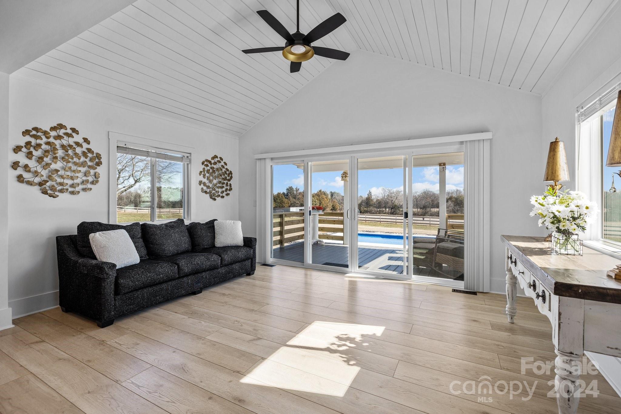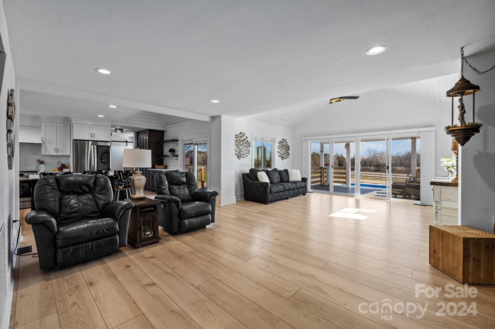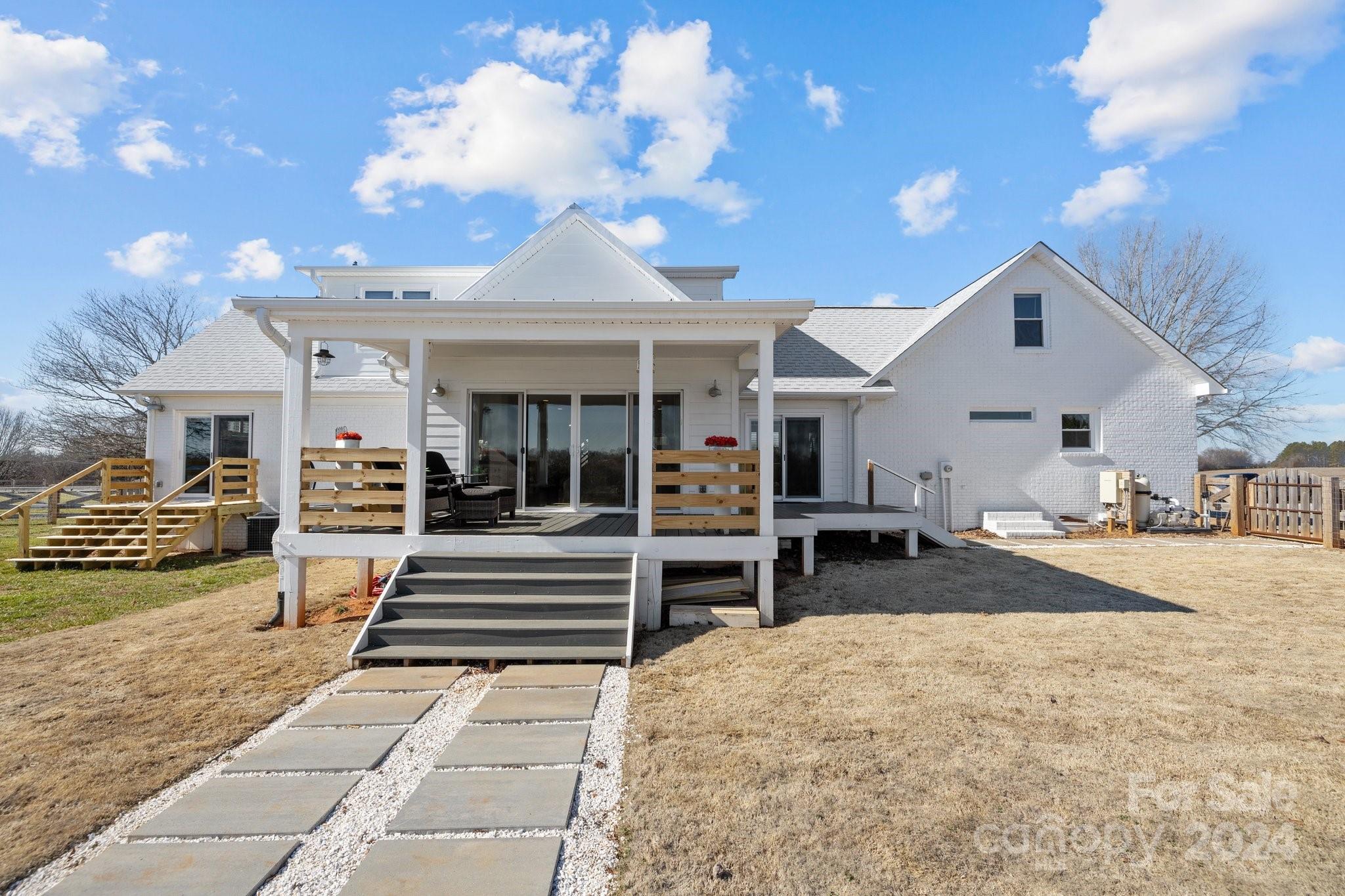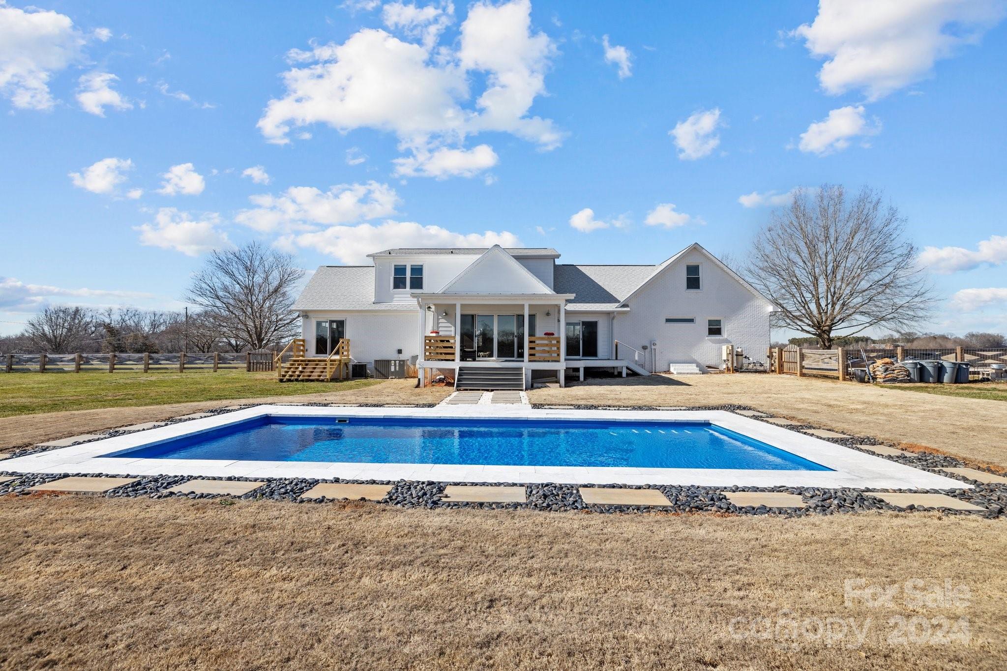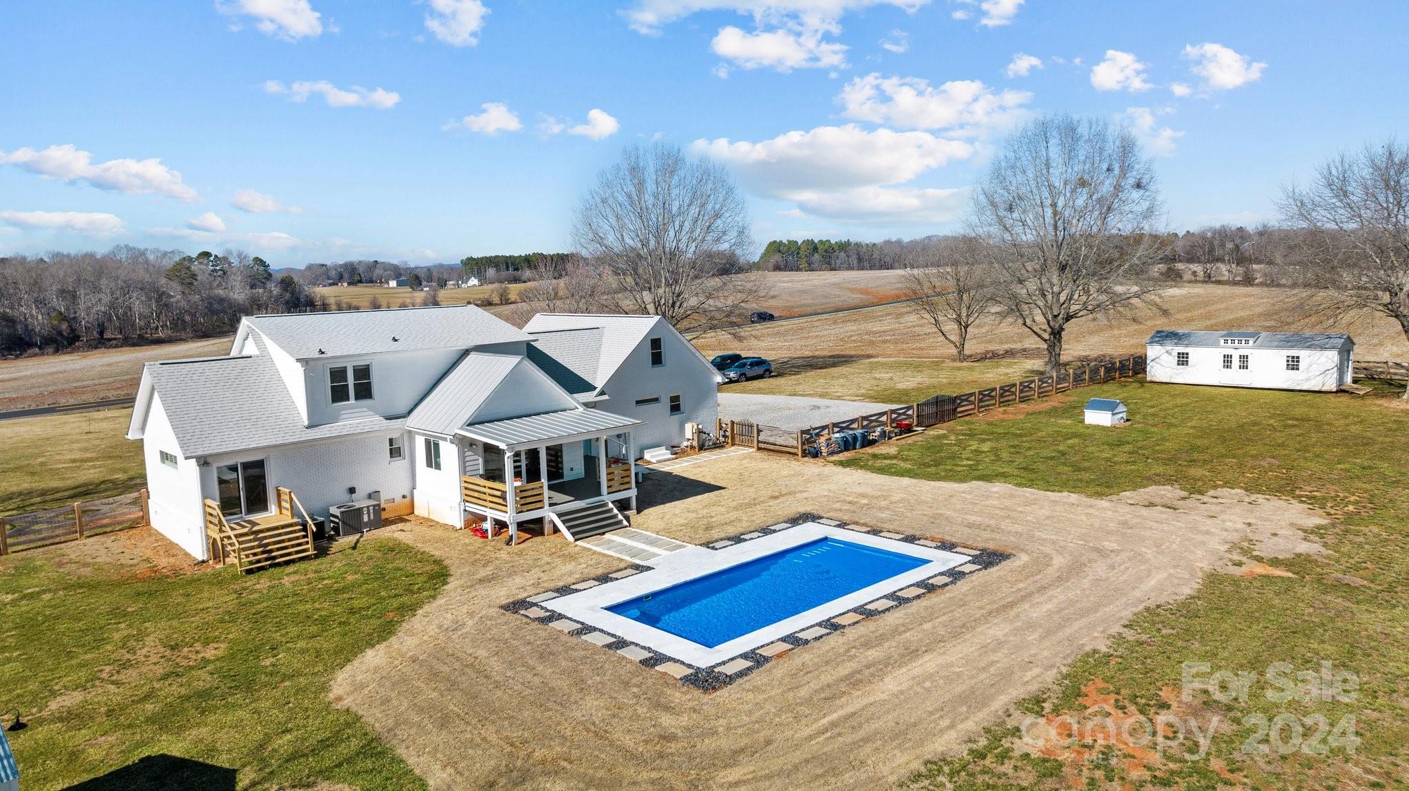 This home has been FULLY renovated including HVAC, all-new kitchen, bathrooms, flooring & the addition of an in-ground pool. Every inch of this home has been updated with incredible detail. Enjoy sitting out front on the large porch or out back overlooking the pool & view of your beautiful acreage. Enter the garage to drop zone with new cabinetry & full bath. Kitchen has all new appliances, cabinets, counters, backsplash & island. The kitchen opens to the family room which connects to the sunroom. This gives you plenty of light & a great view of the pool & yard. The front room can be used as an office, study or game room. The large laundry room outside the primary bedroom is convenient & provides tons of storage. The primary bedroom includes a large closet & modern bathroom. Upstairs has two bedrooms a full bathroom & tons of closet space & storage. New $17,000 Leonard outbuilding INCLUDED. Conveniently located near downtown Lincolnton and easy access to both Gastonia and Hickory.