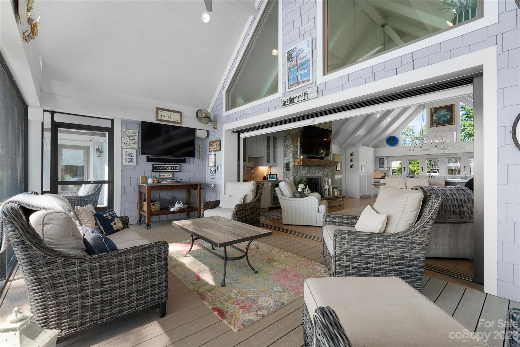Spectacular waterfront home with main channel sunset views. Located on the breathtaking and highly sought after Isle of Pines Peninsula w/no HOA. Recently renovated providing high end luxuries you would expect. 4 bedrooms and 6 baths with 2 Primary Suites: Main level w/waterfront sunroom, 2nd level w/Juliet balcony & separate office. Huge bonus room allows extra space for entertaining. Inspired by the love of entertaining, this home has it all inside & out. True Chef's Kitchen w/high-end appliances, leathered quartzite countertops, oversized statement island. Great room & screened-in porch showcase expansive water views w/15ft glass slider pocket door system. Outdoor oasis features spaces for year-round endless entertainment. Take in the sunsets by the fireplace or relax on the sandy beach with your toes in the sand. Tour the lake on your boat from your covered, stationary dock w/boat lift & PWC lift. Whole home power back up w gas generator. Short term rentals allowed.