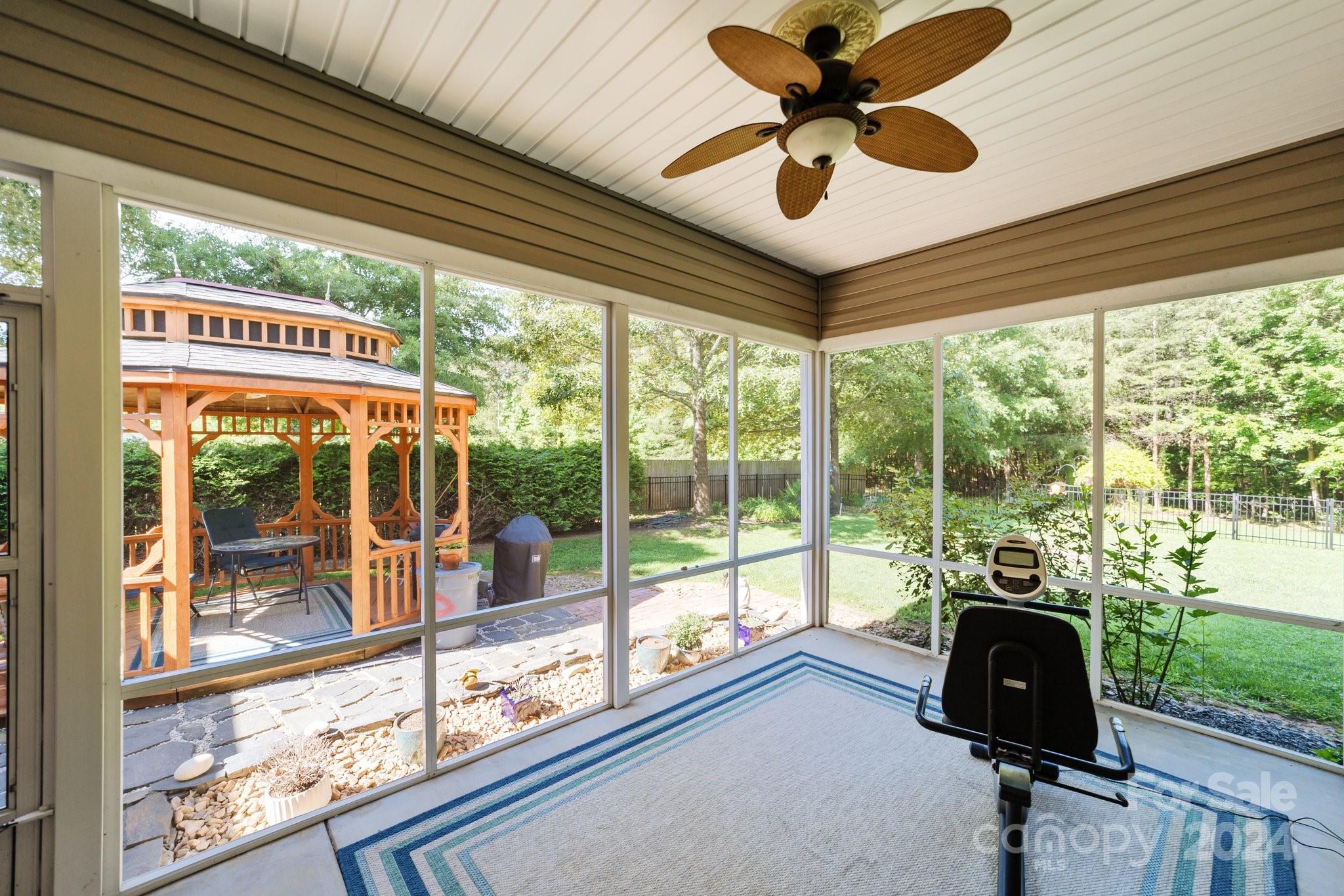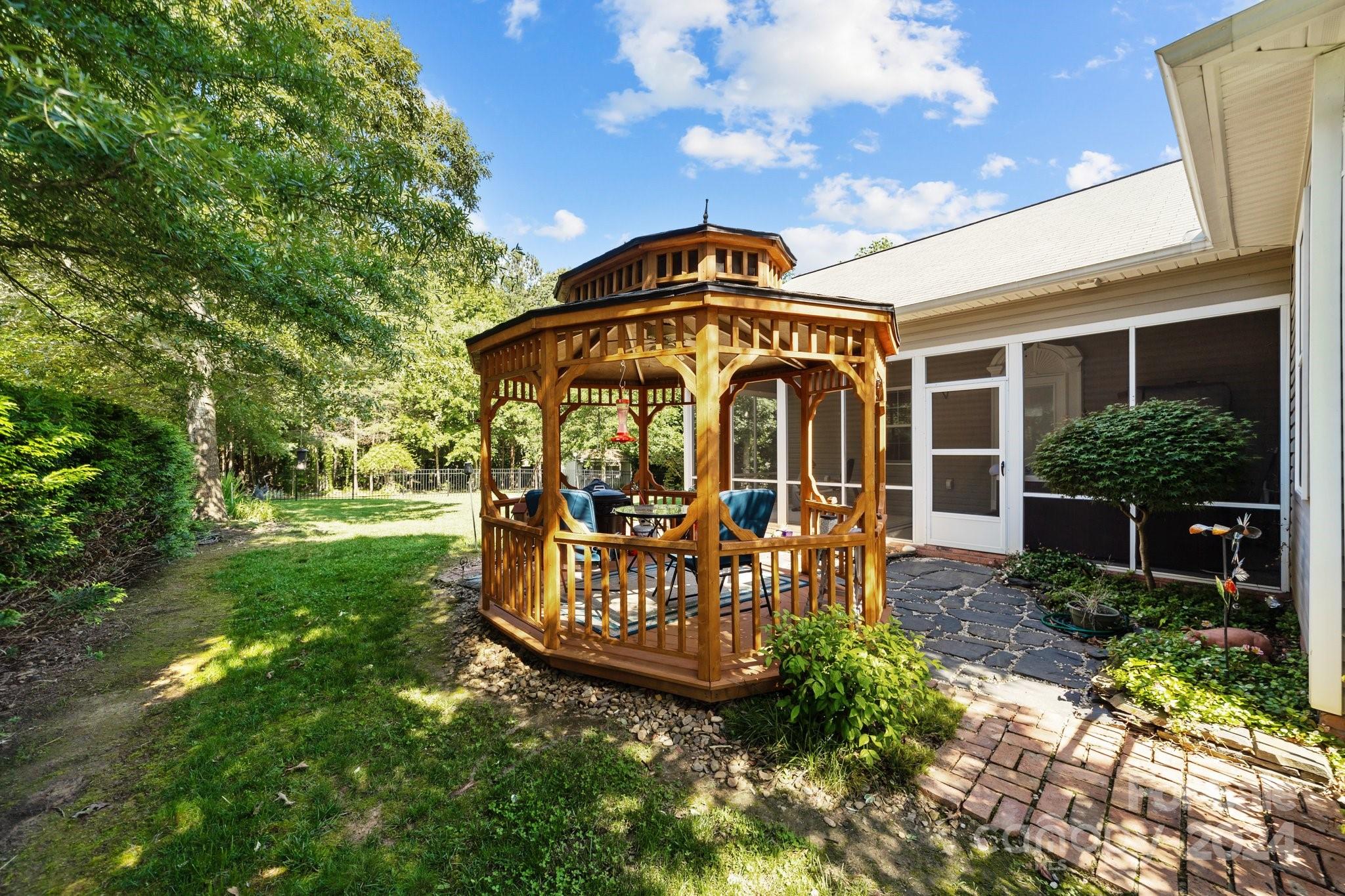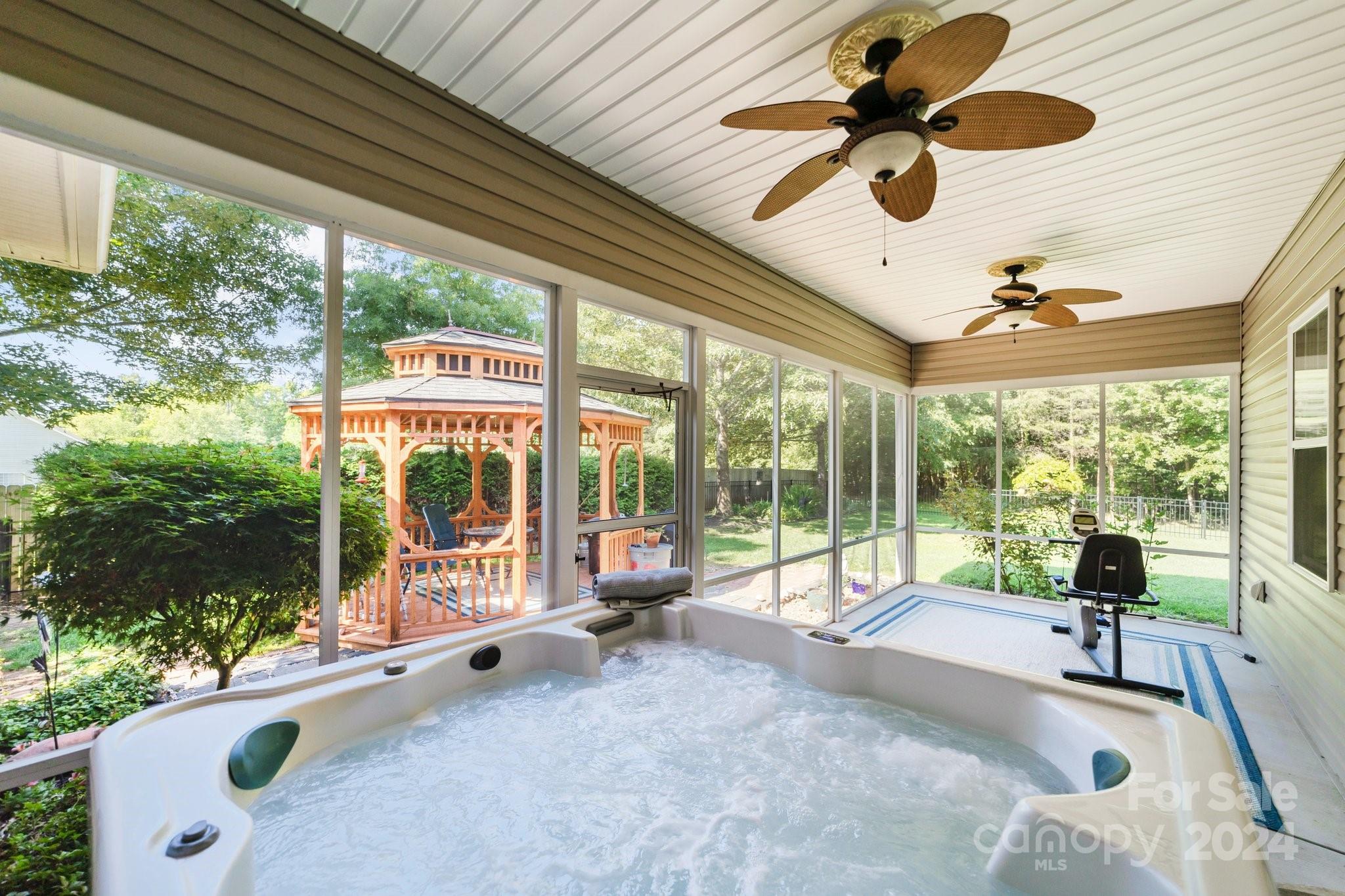 Beautifully maintained home in Archer Farms featuring 3BR-2BA, fenced in backyard, screened porch, gazebo, hot tub, and storage shed! This home offers a spacious, single level floorplan with added back bonus room. The bonus room provides built in shelving and the perfect space for entertaining/additional living space. Primary bedroom features new carpet, a walk-in closet and a stunning bathroom with soaking tub and linen storage. Updated kitchen boast beautiful cabinetry, tile backsplash and stainless steel appliances. Recent updates include: gutter guards, fenced backyard, interior paint, primary bedroom carpet, new garage motor/opener, new heater in hot tub (2022), and a transferable termite bond.