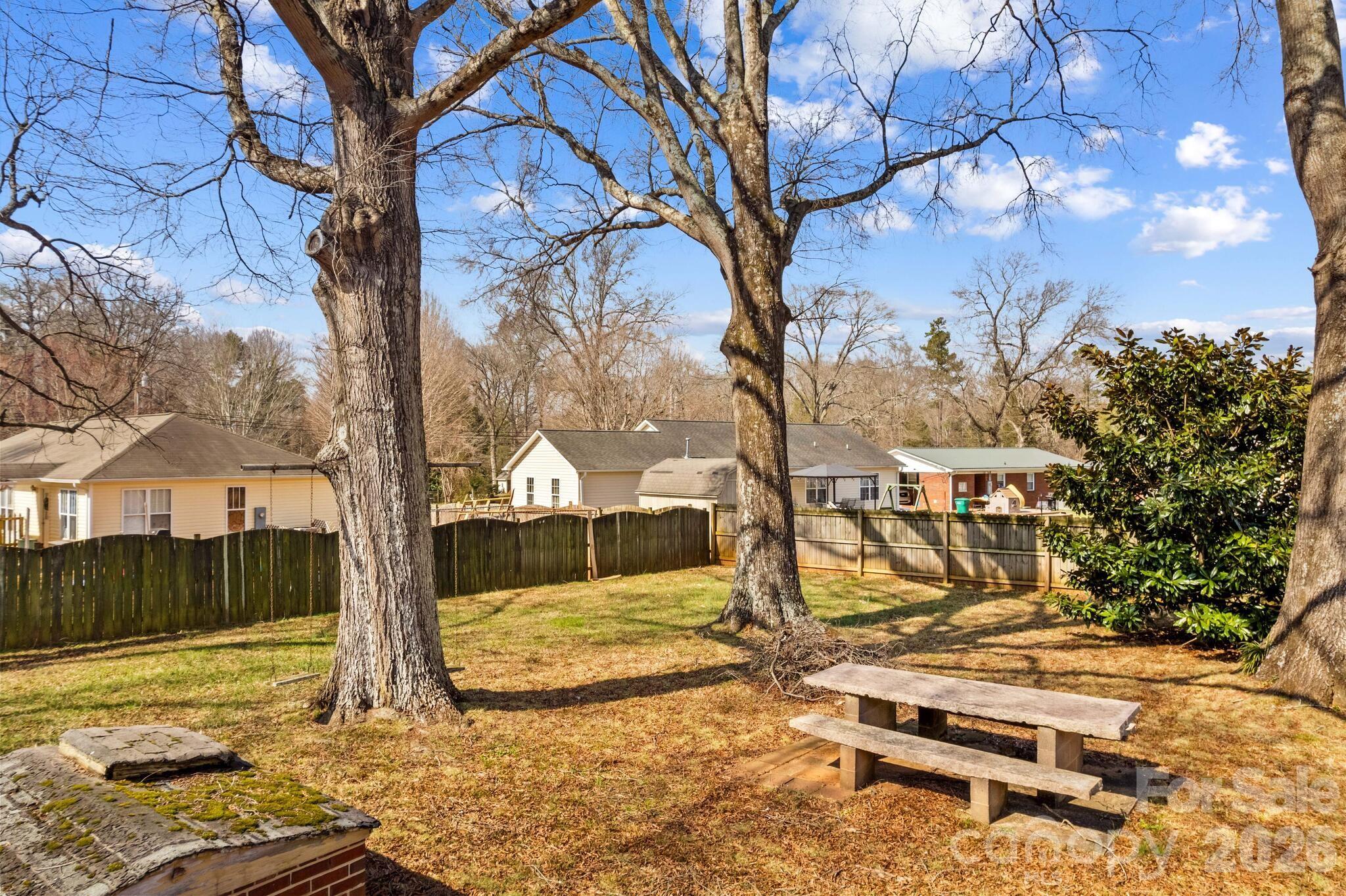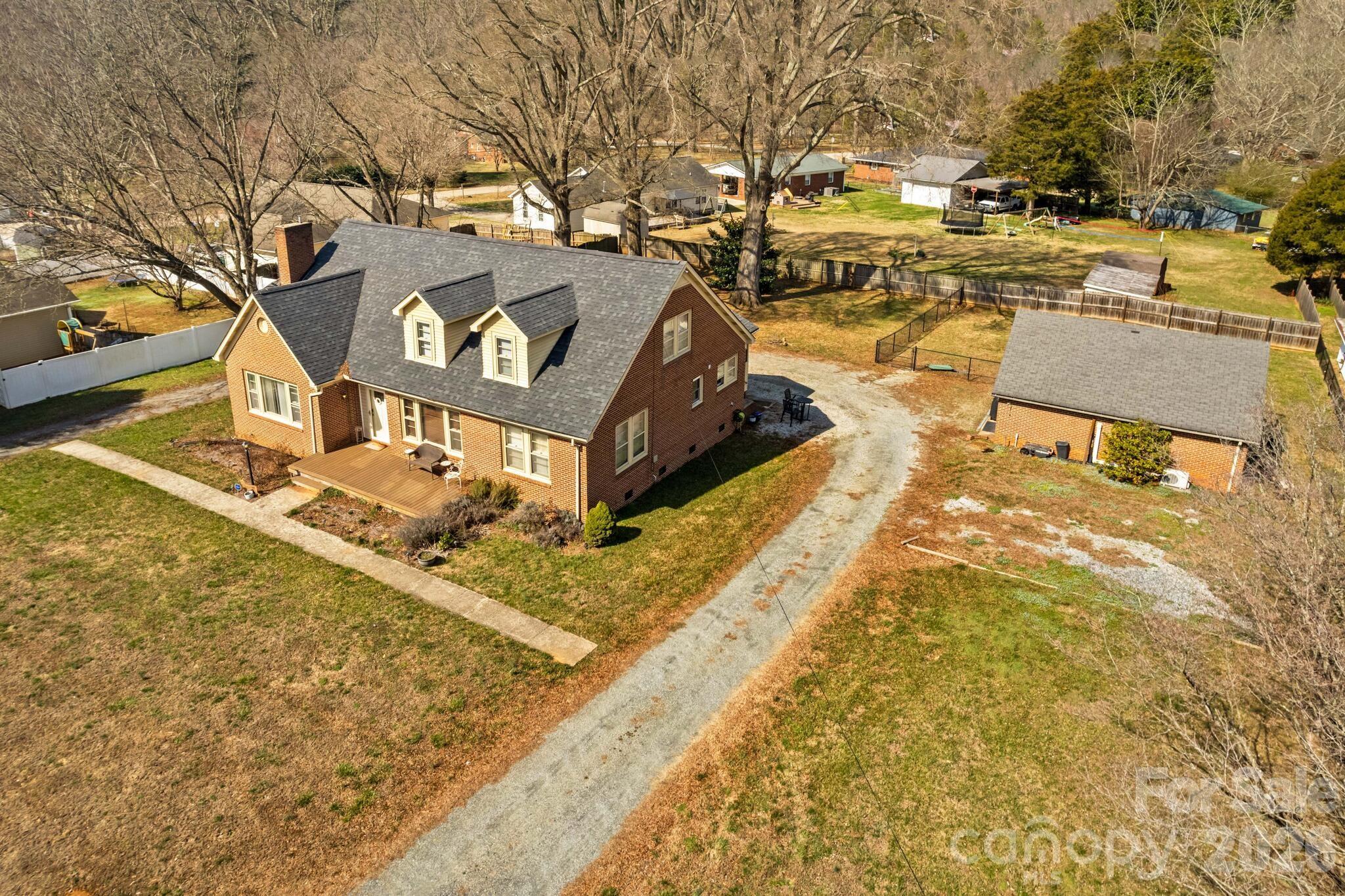 Located close to everything and just minutes from shopping, restaurants, and I-85, this charming 1950s 1.5-story all-brick home offers character, space, and endless possibilities. Situated on .72 acres, the property also features a 675 sq ft detached one-car garage/shop with heat and air that could serve as a workshop, studio, or second living quarters, plus a 542 sq ft partial unfinished basement for additional storage or future expansion. Step inside and fall in love with the amazing charm and original hardwood floors throughout. A lovely walk-in foyer welcomes you and leads upstairs, into the cozy den, or to the main living space featuring a fireplace with gas logs.The home offers a spacious, flowing layout, with the living room opening into an oversized dining and kitchen area that has been remodeled with LVP flooring, new cabinets, updated countertops, and a classic subway tile backsplash. Entertain with ease thanks to the tucked-away mini bar area with wine refrigerator, and don’t miss the hidden door leading to the basement—a fun and functional touch. One main-level bedroom can serve as a primary suite, complete with a large remodeled bath featuring a tiled shower. Upstairs you’ll find a flex space, three spacious bedrooms, and an additional full bath with tiled tub/shower. Additional highlights include an oversized laundry room, a fenced area in the rear yard perfect for play or pets, and a circular driveway for convenient access. Mature shade trees create the perfect setting for relaxing afternoons outdoors. This unique property is full of character and opportunity and has so much to offer.
