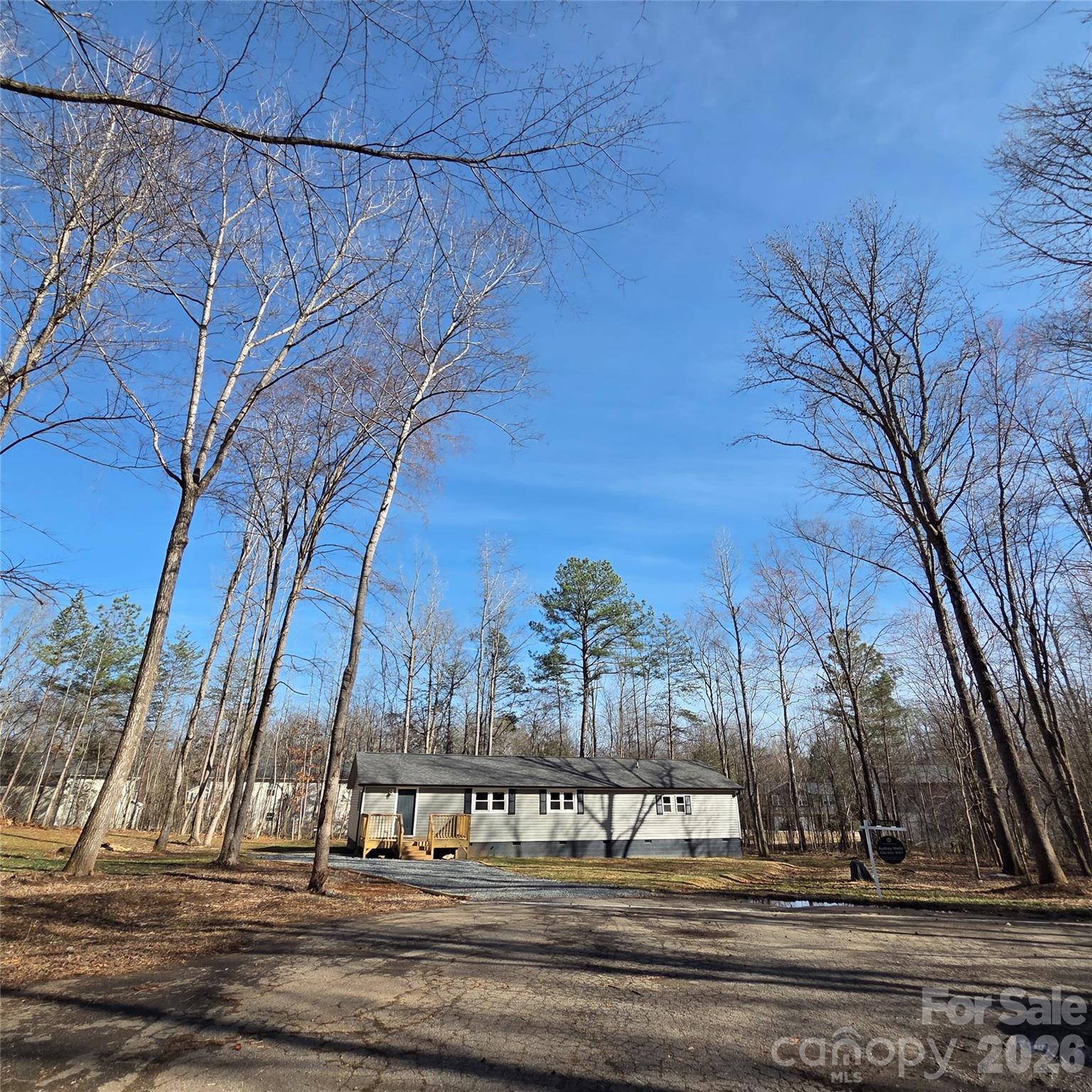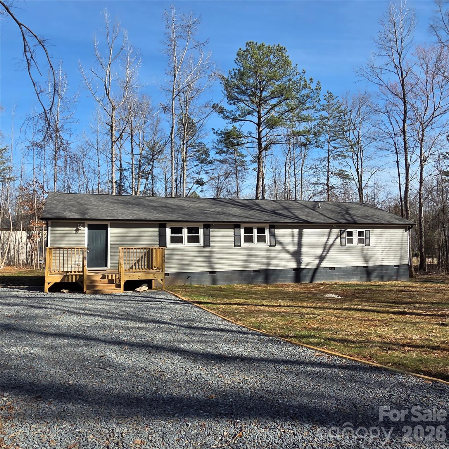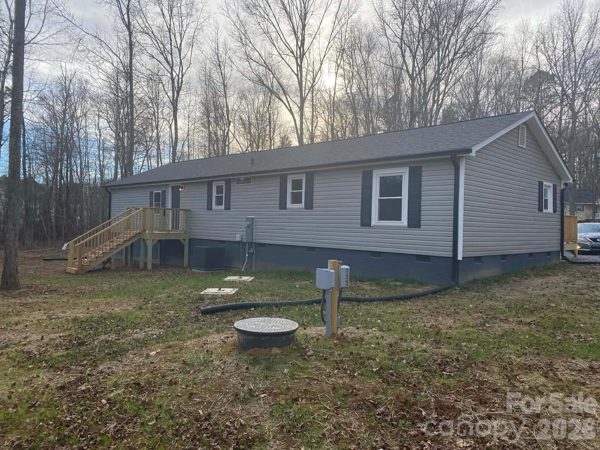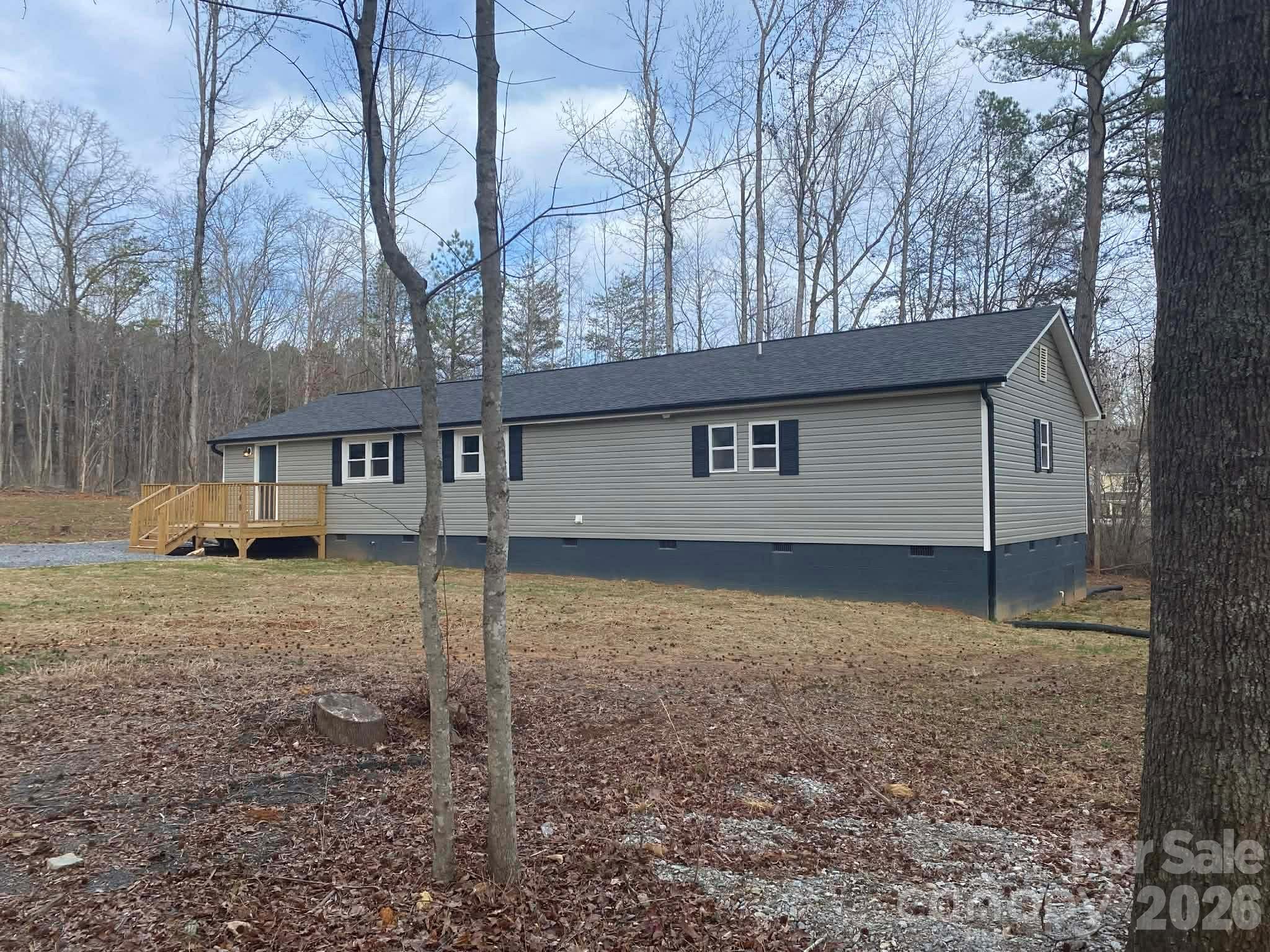 This move-in ready, Newly Renovated, 1,725sf 3-bed, 2-bath, stick-built home was professionally transported to a private 1.78-acre partially wooded cul-de-sac. ALL NEW: Roof, Gutters, Siding, Windows, HVAC, Electrical, Plumbing, Foundation, Well, and Septic. Everything is new except for the frame of the roof and attic, interior and exterior walls, ceilings, subfloors, and kitchen cabinets. Double-car garage was converted into a spacious 512sf primary suite with separate deck and entrance, open sitting area, and 2 closets. Beautifully renovated kitchen with refurbished cabinetry includes 2 lazy susans, microwave shelf, undermount sink, and a solid surface countertop with custom tile backsplash. Two renovated bathrooms with tile flooring. There is new LVP flooring, and fresh paint throughout. The kitchen and laundry room are ready for buyer’s choice of appliances, possibly negotiable with an acceptable offer. A list of improvements for easy reference is attached. Audrey Wells is the CONTACT person for this listing 336-602-9557 Audreyagent007@gmail.com